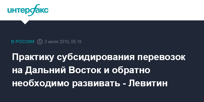 Практику субсидирования перевозок на Дальний Восток и обратно необходимо развивать - Левитин