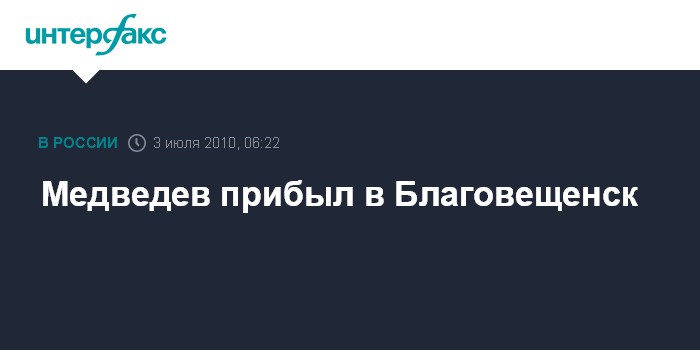Благовещенск. 3 июля. ИНТЕРФАКС - Президент России Дмитрий Медведев, посещающий с рабочей поездкой Дальний Восток, в субботу прибыл в Благовещенск.