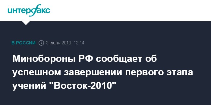 Минобороны РФ сообщает об успешном завершении первого этапа учений "Восток-2010"