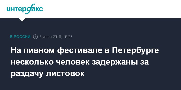 Санкт-Петербург. 3 июля. ИНТЕРФАКС СЕВЕРО-ЗАПАД - В Петербурге в субботу на фестивале кваса и пива задержаны активисты, начавшие раздавать оппозиционные листовки, сообщил "Интерфаксу" источник в правоохранительных органа.