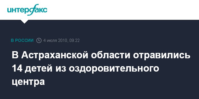 Москва. 4 июля. INTERFAX.RU В Астраханской области у села Бирюковки Приволжского района из детского оздоровительного центра госпитализированы 14 детей, сообщил "Интерфаксу" источник в правоохранительных органах.