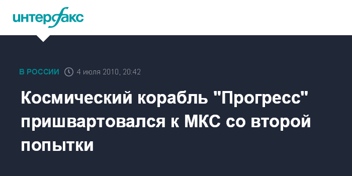 Космический корабль "Прогресс" пришвартовался к МКС со второй попытки