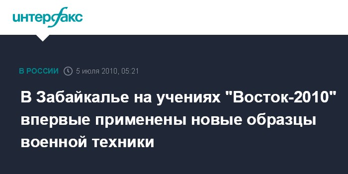 В Забайкалье на учениях "Восток-2010" впервые применены новые образцы военной техники