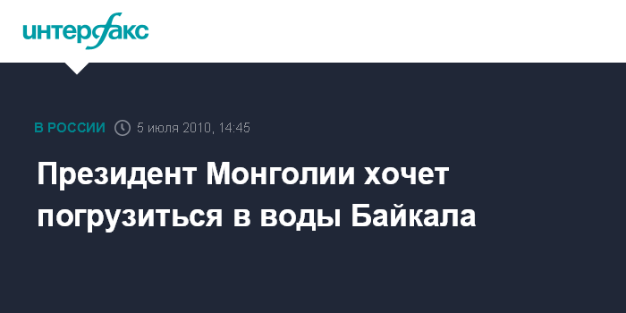 Чита. 5 июля. INTERFAX.RU - Президент Монголии Цахиагийн Элбегдорж планирует в середине июля на Байкале совершить погружение в глубоководном аппарате "Мир", сообщили в пресс-службе правительства и президента Бурятии.
