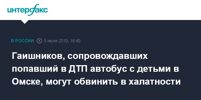 Москва. 5 июля. INTERFAX.RU - Следственное управление СКП РФ по Омской области продлило до 24 июля проверку в отношении сотрудников ГИБДД, сопровождавших автобус с детьми, в который врезался КАМАЗ.