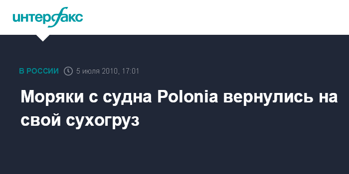 Санкт-Петербург. 5 июля. NITERFAX.RU - Освобожденные накануне российские члены экипажа судна BBC Polonia освобождены и уже находятся на своем сухогрузе, сообщили "Интерфаксу" в российском профсоюзе моряков в понедельник.