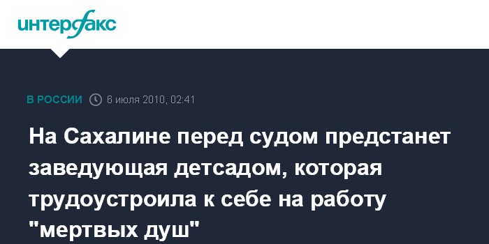 Южно-Сахалинск. 6 июля. ИНТЕРФАКС-ДАЛЬНИЙ ВОСТОК - В Южно- Сахалинский городской суд направлено уголовное дело в отношении бывшей заведующей детского сада № 58 "Ручеек".