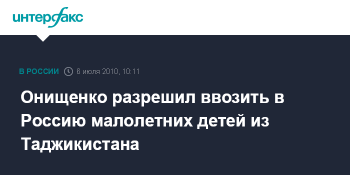 Онищенко разрешил ввозить в Россию малолетних детей из Таджикистана