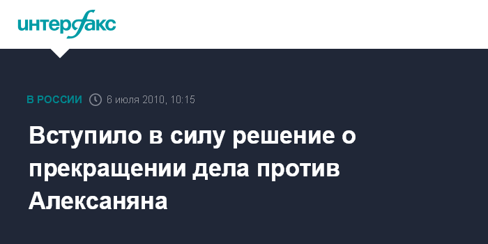 Вступило в силу решение о прекращении дела против Алексаняна