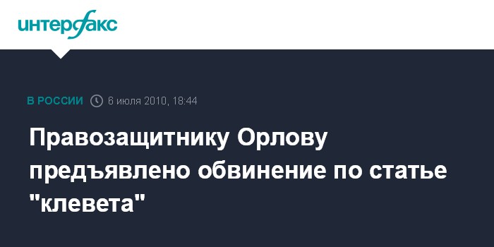 "Мне предъявлено обвинение по статье 129 часть 3 Уголовного кодекса (клевета). Меня уже допросили в качестве обвиняемого", - сказал О.Орлов "Интерфаксу".
