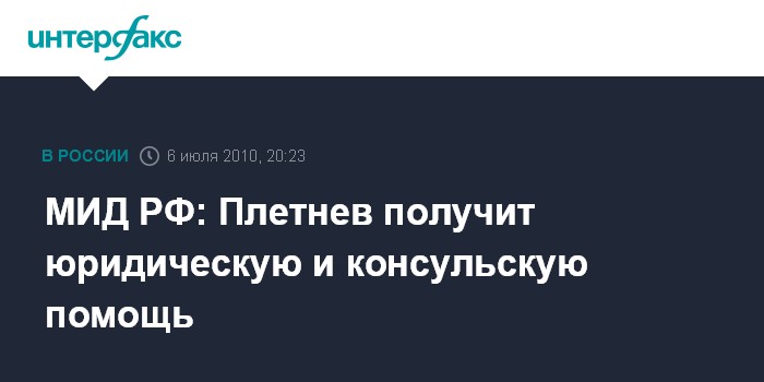 МИД РФ: Плетнев получит юридическую и консульскую помощь