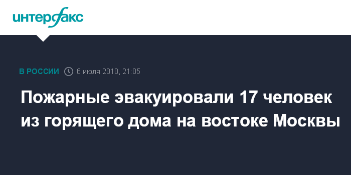 Пожарные эвакуировали 17 человек из горящего дома на востоке Москвы