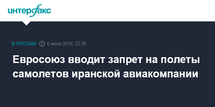 Лондон. 6 июля. ИНТЕРФАКС - Большей части самолетов иранской авиакомпании Iran Air будет запрещено летать в ЕС по причинам безопасности, сообщает во вторник британская телерадиокорпорация Би-би-си со ссылкой на заявление Еврокомиссии.