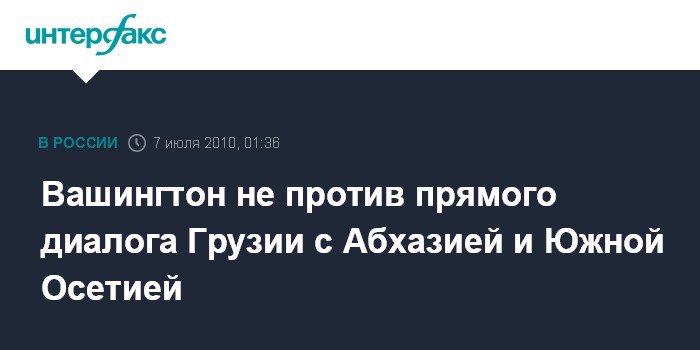 "Не секрет, что у США отличные от России взгляды на Грузию, Южную Осетию и Абхазию. Мы верим в суверенитет Грузии и в ее территориальную целостность, Россия же нет. Мы ясно сказали России об этом. Когда президент Медведев (президент РФ Дмитрий Медведев - ИФ) был в Вашингтоне, президент Обама (президент США Барак Обама - ИФ) поднял этот вопрос", - сказал американский дипломат.