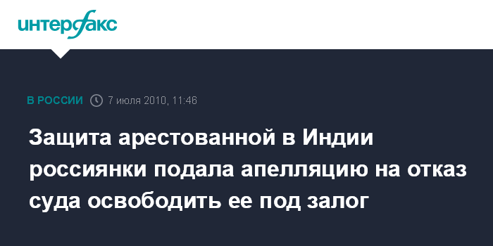 Защита арестованной в Индии россиянки подала апелляцию на отказ суда освободить ее под залог