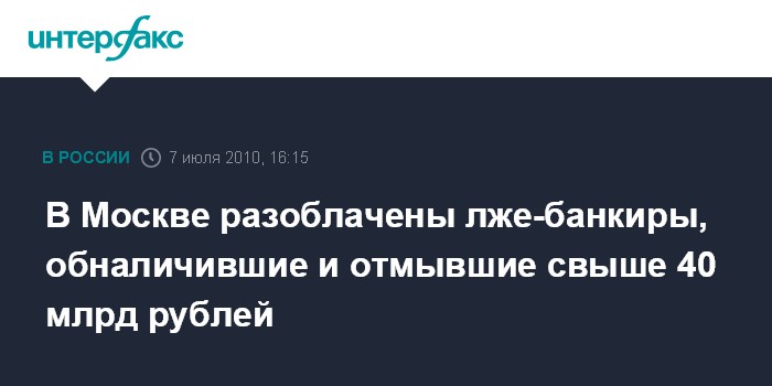 В Москве разоблачены лже-банкиры, обналичившие и отмывшие свыше 40 млрд рублей