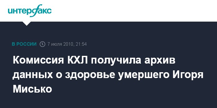 Москва. 7 июля. INTERFAX.RU - Председатель медицинского комитета КХЛ Николай Дурманов, который вошел в специальную комиссию по расследованию смерти нападающего СКА Игоря Мисько, заявил, что комиссия уже получила медицинские данные хоккеиста.