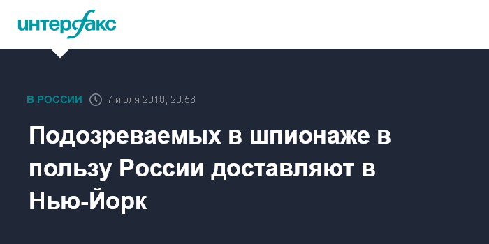 Вашингтон. 7 июля. INTERFAX.RU - Пятеро из 11-ти подозреваемых по делу о шпионаже в пользу России в среду перевозятся из Бостона и Александрии (Вирджиния) в Нью-Йорк, сообщают американские СМИ.