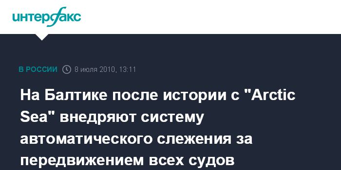 Москва. 8 июля. INTERFAX.RU - История с захватом лесовоза "Arctic Sea" показала, что международная система обеспечения безопасного судоходства в Балтийском море требует совершенства, отмечают в погрануправлении ФСБ РФ.