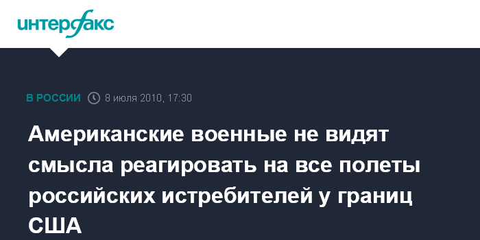 По его словам, американские перехватчики не имеют приказа реагировать на все полеты российских бомбардировщиков. "Если мы будем перехватывать каждый полет, который проводится в нашем направлении, тогда мы просто станем кормить их пропаганду", - сказал он.