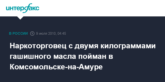 Хабаровск. 9 июля. ИНТЕРФАКС-ДАЛЬНИЙ ВОСТОК - В Комсомольске-на- Амуре пойман с поличным гражданин Азербайджана, пытавшийся сбыть более килограммов гашишного масла, сообщает в пятницу пресс-служба Управления ФСБ РФ по Хабаровскому краю.