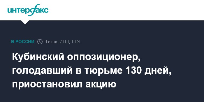 Москва. 9 июля. INTERFAX.RU - Кубинский оппозиционер Гильермо Фариньяс Эрнандес временно прекратил голодовку, начатую 130 дней назад ради освобождения соратников, сообщает работающая из США для Кубы радиостанция "Радио Марти".
