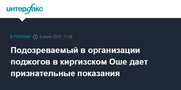 Москва. 9 июля. INTERFAX.RU - В Оше задержан подозреваемый в организации поджогов зданий государственных учреждений, сообщила в пятницу пресс-служба комендатура южной столицы Киргизии.