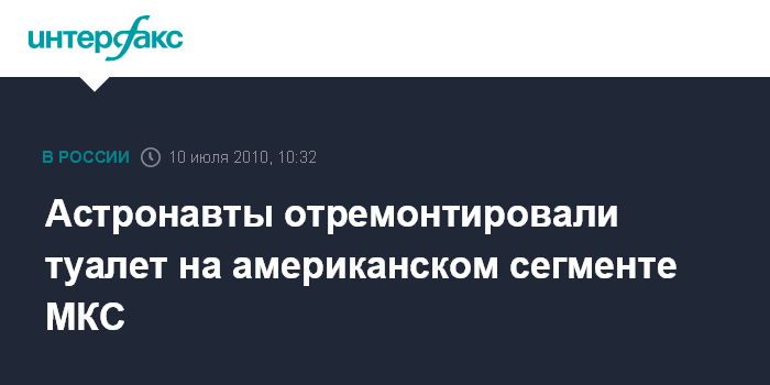 Москва. 10 июля. INTERFAX.RU - Астронавты починили туалет на американском сегменте Международной космической станции (МКС), вышедший из строя четыре дня назад, сообщает Национальное аэрокосмическое агентство США.