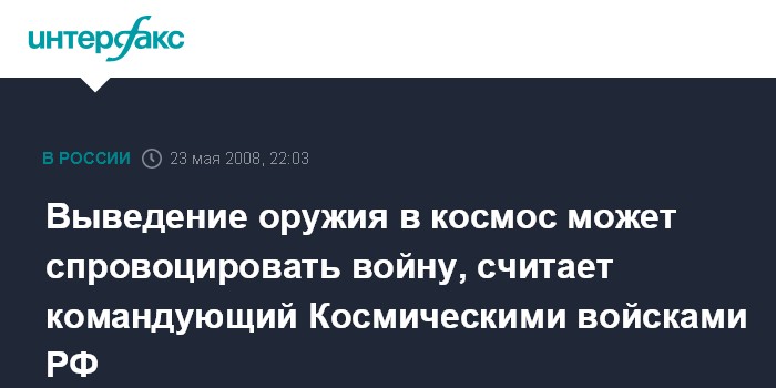 По словам В.Поповкина, наличие ударных средств на орбите может спровоцировать военные действия на земле. "Вспомним, что большие войны - первая мировая, вторая мировая - начались с незначительных провокаций", - сказал В.Поповкин.