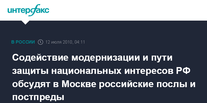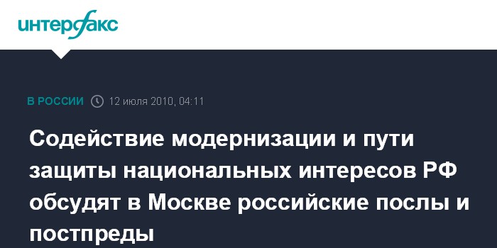 Содействие модернизации и пути защиты национальных интересов РФ обсудят в Москве российские послы и постпреды