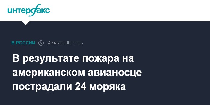 Вашингтон. 24 мая. ИНТЕРФАКС - Не менее 24 военных моряков пострадали в результате пожара на борту американского авианосца "Джордж Вашингтон", говорится в информационном сообщении, распространенном в субботу военно-морским флотом США.