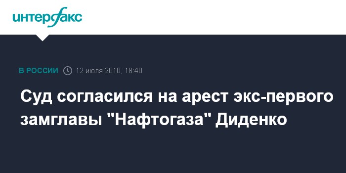 Киев. 12 июля. INTERFAX.RU - Печерский районный суд Киева избрал мерой пресечения в отношении бывшего первого заместителя главы правления НАК "Нафтогаз Украины" Игоря Диденко арест на два месяца.