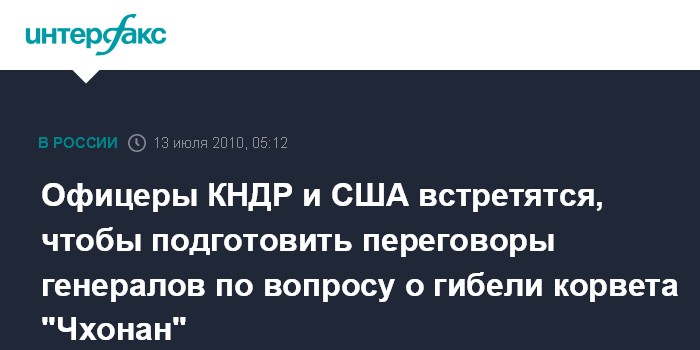 Офицеры КНДР и США встретятся, чтобы подготовить переговоры генералов по вопросу о гибели корвета "Чхонан"