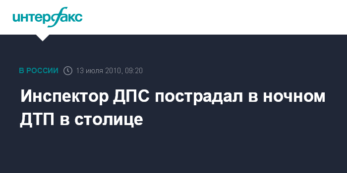 Москва. 13 июля. INTERFAX.RU - Прапорщик милиции, инспектор ДПС госпитализирован минувшей ночью в Москве после ДТП, сообщил "Интерфаксу" во вторник источник в правоохранительных органах города.