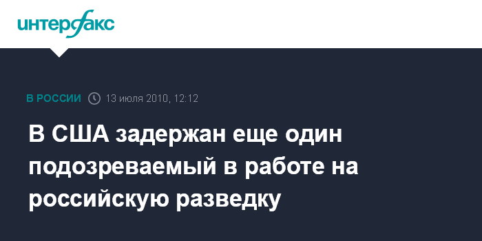 Москва. 13 июля. INTERFAX.RU - Власти США задержали нового фигуранта "шпионского скандала", о котором ранее ничего не сообщалось, пишет американская газета "Уолл-стрит джорнэл" со ссылкой на официальный американский источник, близкий к делу.