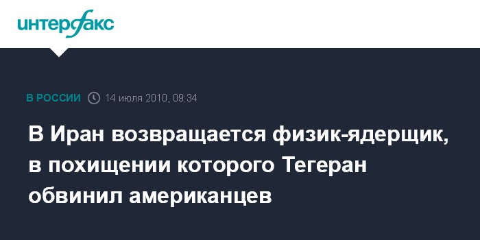 Москва. 14 июля. INTERFAX.RU - Иранский физик-ядерщик Шахрам Амири, оказавшийся в центре ирано-американского скандала в связи с его предполагаемым похищением в 2009 году, направляется из США в Иран, сообщает в среду иранский англоязычный телеканал "Пресс ТВ".