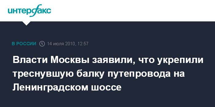 Власти Москвы заявили, что укрепили треснувшую балку путепровода на Ленинградском шоссе