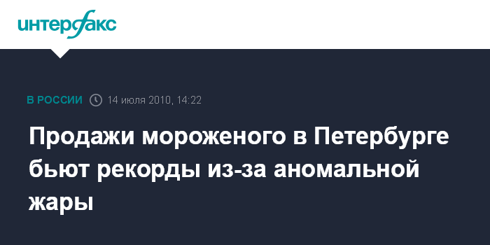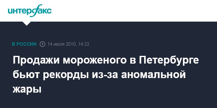 Москва. 14 июля. INTERFAX.RU - Производители мороженого в Петербурге сообщают о рекордных продажах продукции из-за установившейся в регионе аномальной жары.
