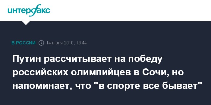 Путин рассчитывает на победу российских олимпийцев в Сочи, но напоминает, что "в спорте все бывает"