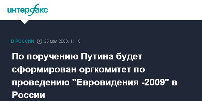 По поручению Путина будет сформирован оргкомитет по проведению "Евровидения -2009" в России