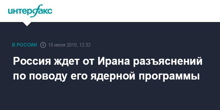 Россия ждет от Ирана разъяснений по поводу его ядерной программы