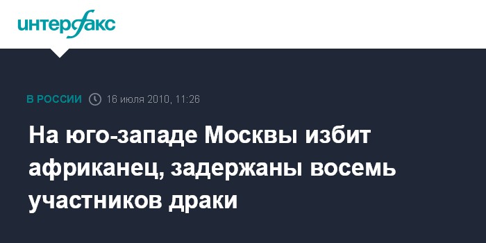 На юго-западе Москвы избит африканец, задержаны восемь участников драки