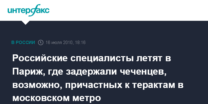 Российские специалисты летят в Париж, где задержали чеченцев, возможно, причастных к терактам в московском метро