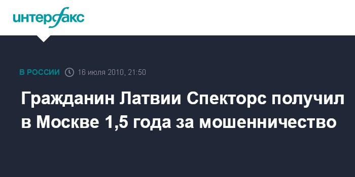 Гражданин Латвии Спекторс получил в Москве 1,5 года за мошенничество