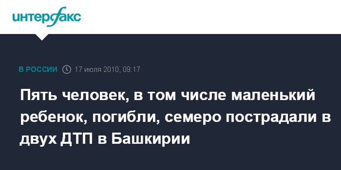 Пять человек, в том числе маленький ребенок, погибли, семеро пострадали в двух ДТП в Башкирии