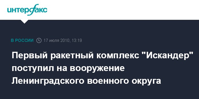 "Первый и достаточно эффективный ракетный комплекс "Искандер" поступил на вооружение Ленинградского военного округа", - сказал А.Постников в субботу в эфире радиостанции "Эхо Москвы".