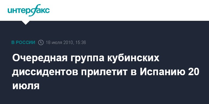 Мадрид. 18 июля. INTERFAX.RU - Еще девять диссидентов, выпущенных из заключения на Кубе, прилетят в Испанию на следующей неделе, сообщают испанские СМИ со ссылкой на заявление министра иностранных дел Мигеля Анхеля Моратиноса. Ожидается, что они прилетят в Испанию 20 июля, вместе с ними в Мадрид прилетят около 50 их родственников.