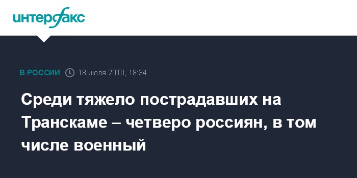 Среди тяжело пострадавших на Транскаме – четверо россиян, в том числе военный