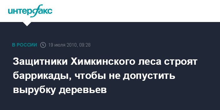 Как сообщалось, 27 марта 2010 года кассационная коллегия Верховного суда РФ подтвердила решение о признании законным распоряжения правительства РФ, согласно которому часть Химкинского леса передана под строительство трассы.