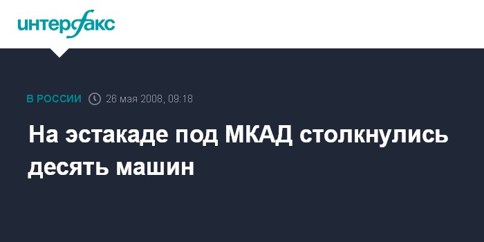 Москва. 26 мая. INTERFAX.RU - Минувшей ночью на эстакаде над МКАД произошло крупное ДТП. Как сообщил "Интерфаксу" источник в правоохранительных органах, около 23:00 на Липецкой улице столкнулись "сразу десять автомобилей, двигавшихся по направлению из области в центр".